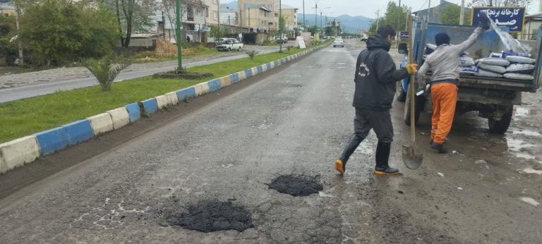 لکهگیری معابر سطح شهر با آسفالت سرد توسط شهرداری ماسال
